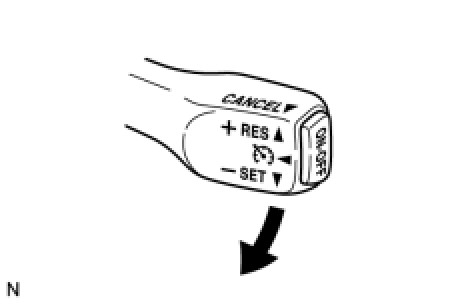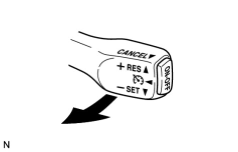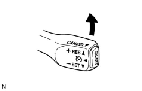(d) Check that the vehicle speed increases while the main switch is pulled up to +/RES, and that the vehicle cruises at the set speed when the switch is released.