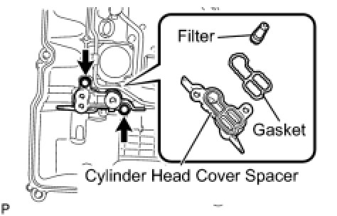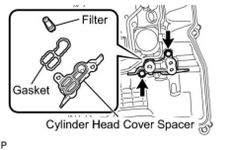 (2) Install a new gasket and the cylinder head cover spacer with the 2 bolts.