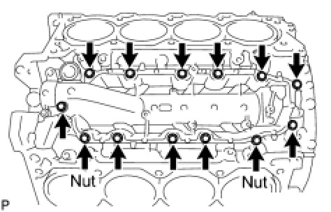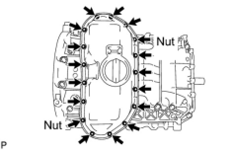 (b) Install the oil pan with the 14 bolts and 2 nuts.
