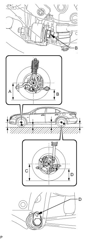 * Before inspecting the wheel alignment, adjust the vehicle height to the specified value.
