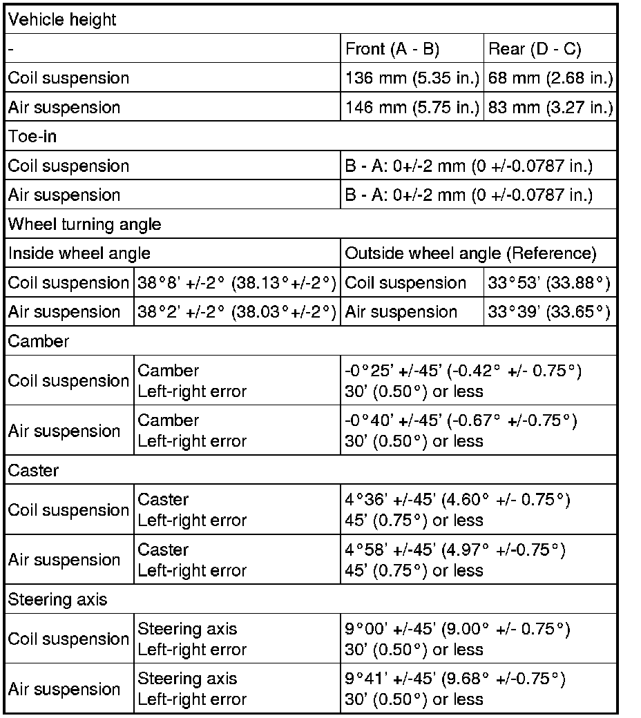 SERVICE SPECIFICATIONS: SUSPENSION: SERVICE DATA