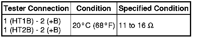 If the result is not as specified, replace the heated oxygen sensor.