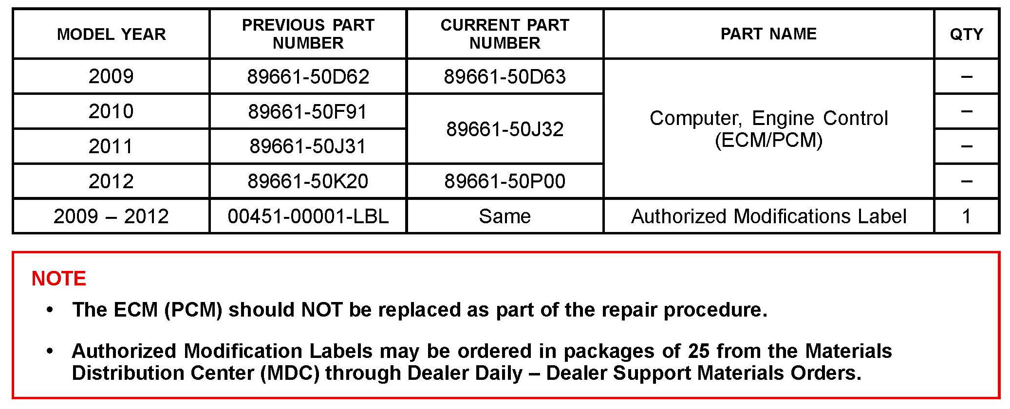 ^ ECM part number [Refer to the Parts Information section for the CURRENT PART NUMBER]