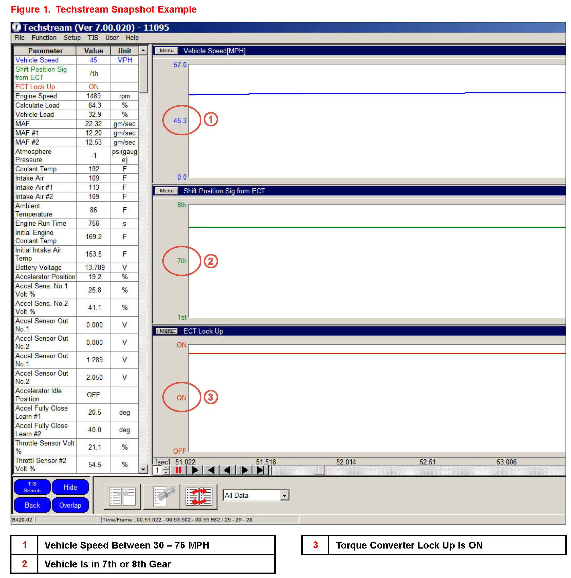 2. Perform a test drive with Techstream take a snapshot and place a flag when the condition is occurring.