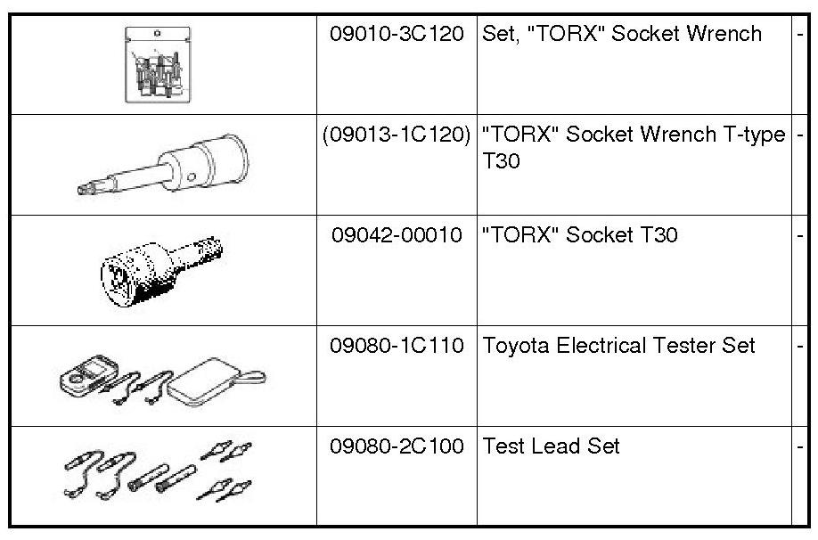 PREPARATION: SUPPLEMENTAL RESTRAINT SYSTEM: RECOMMENDED TOOLS