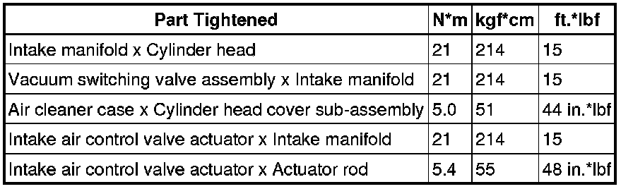 SERVICE SPECIFICATIONS: 1UR-FSE INTAKE: TORQUE SPECIFICATIONS