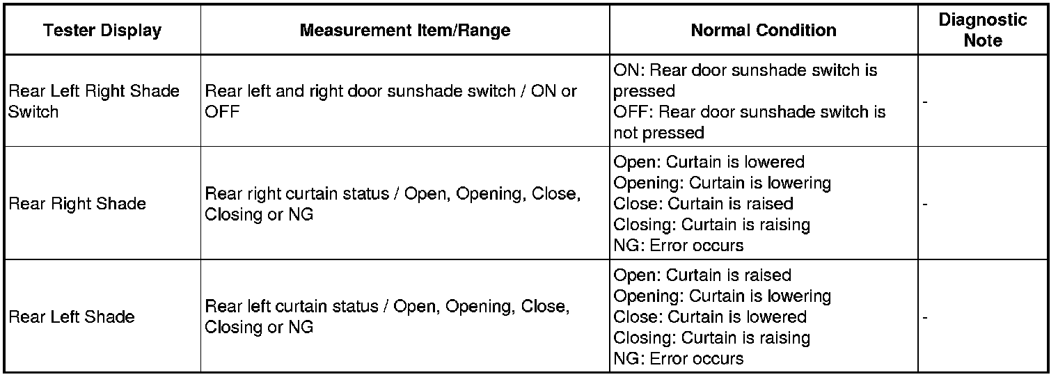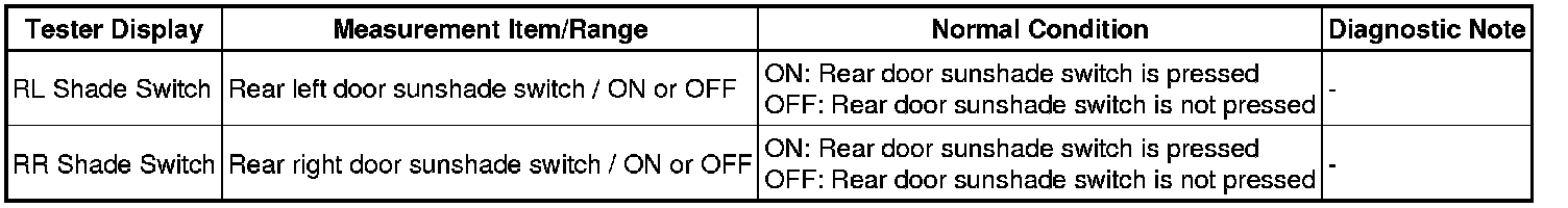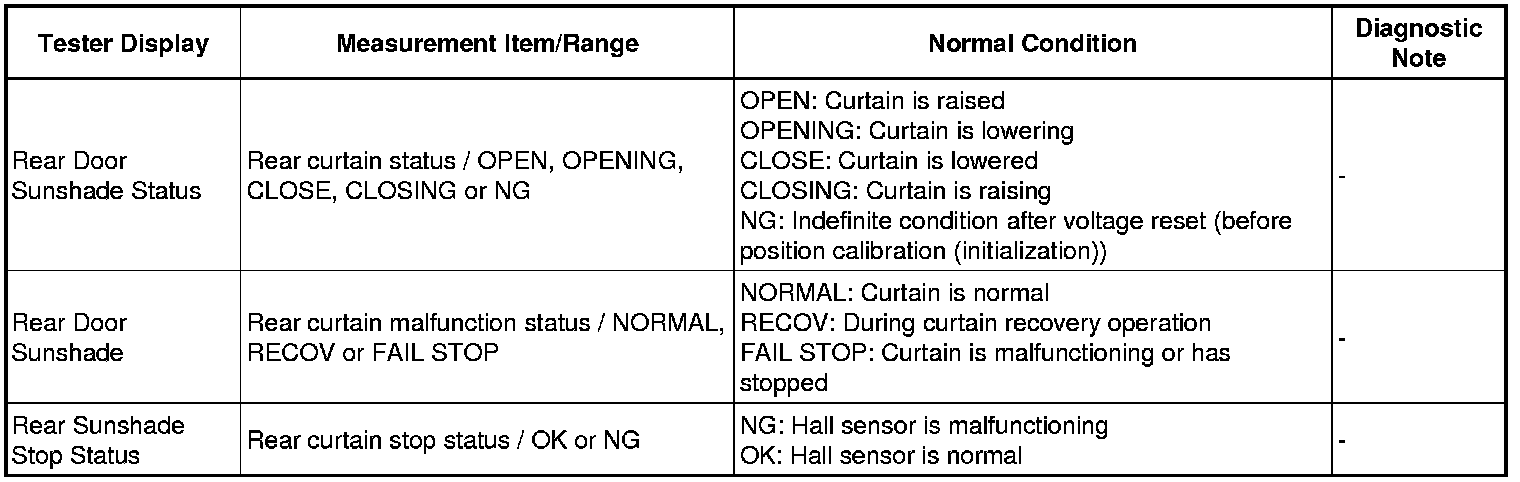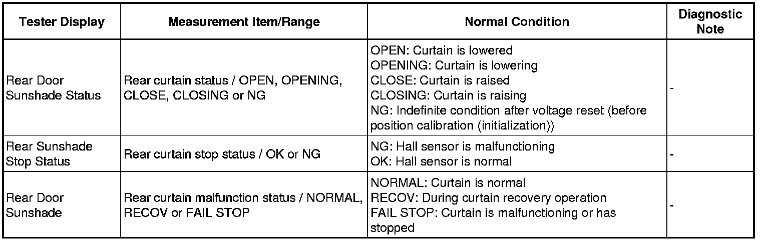 INTERIOR: REAR DOOR SUNSHADE SYSTEM: DATA LIST / ACTIVE TEST