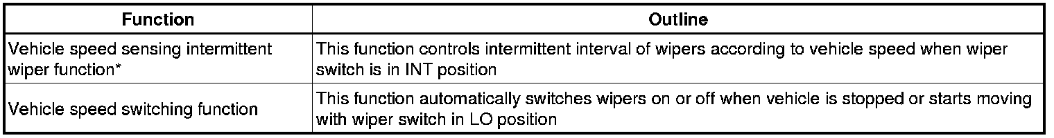 *: The vehicle speed sensing intermittent wiper function operates even when the fail-safe function operates due to a malfunction in the auto wiper function.