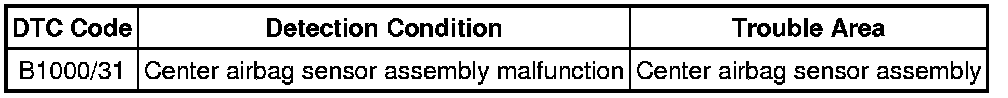 SUPPLEMENTAL RESTRAINT SYSTEM: AIRBAG SYSTEM: B1000/31: Center Airbag Sensor Assembly Malfunction