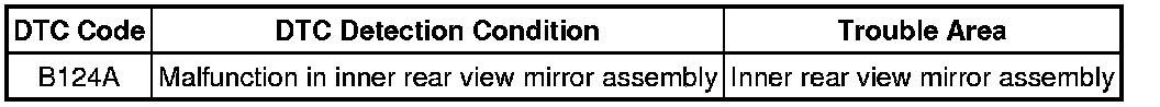 This DTC is stored when the main body ECU detects malfunctions in the inner rear view mirror assembly.