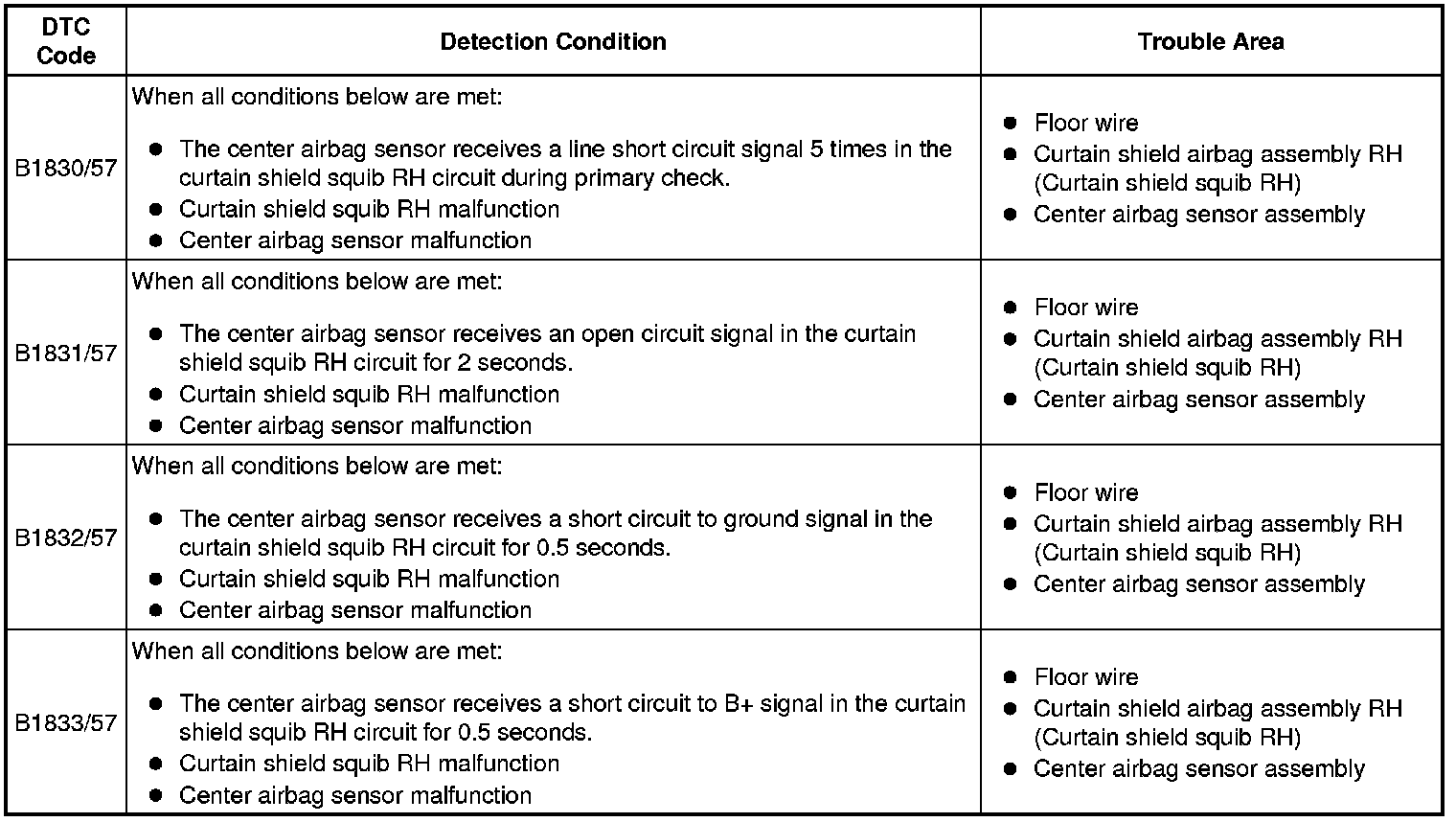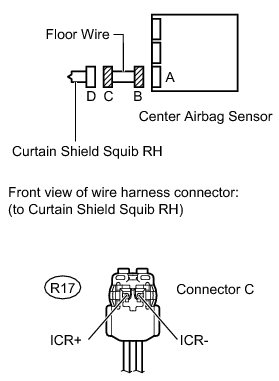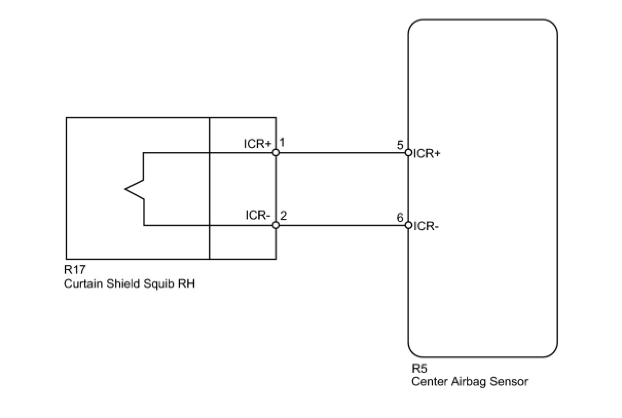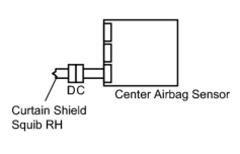 The curtain shield squib RH circuit consists of the center airbag sensor and the curtain shield airbag RH.