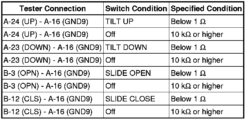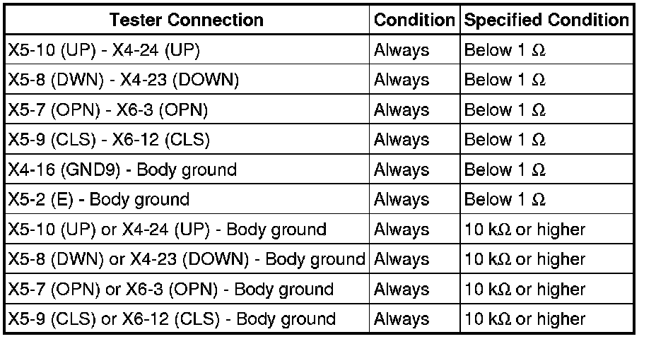 NG -- CHECK HARNESS AND CONNECTOR (SLIDING ROOF ECU - SLIDING ROOF SWITCH)