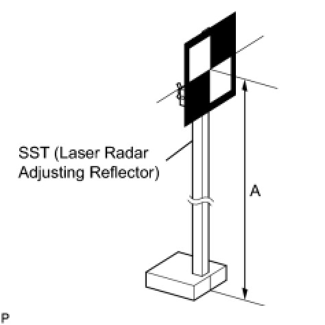 (2) Hang a weight with a pointed tip from the center of the target sheet. Then with double-sided tape, attach the target sheet to the reflector so that the weight aligns with the mark-off line of the SST (laser radar adjusting reflector).
