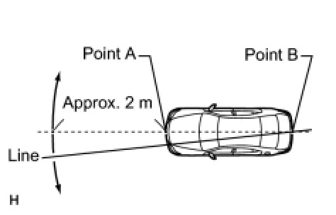 (2) Draw a line that connects points A and B, and then extend the line approximately 2 m (6.56 ft.) beyond the front of the vehicle.