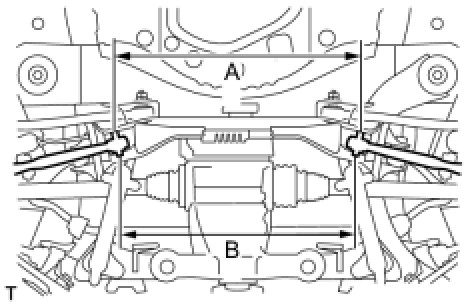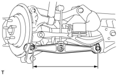 (1) Measure the distance between the centers of the installation bolts of the rear No. 2 suspension arm assembly LH and RH.