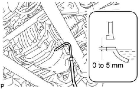 (1) Add differential oil so that the oil level is between 0 to 5 mm (0 to 0.197 in.) from the bottom lip of the differential filler plug hole.