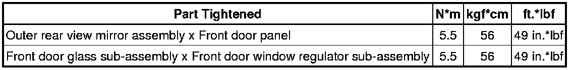 SERVICE SPECIFICATIONS: EXTERIOR: TORQUE SPECIFICATIONS