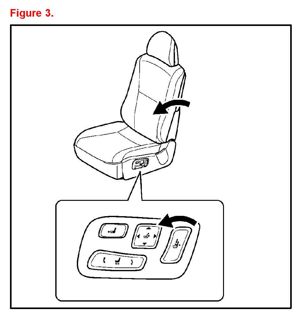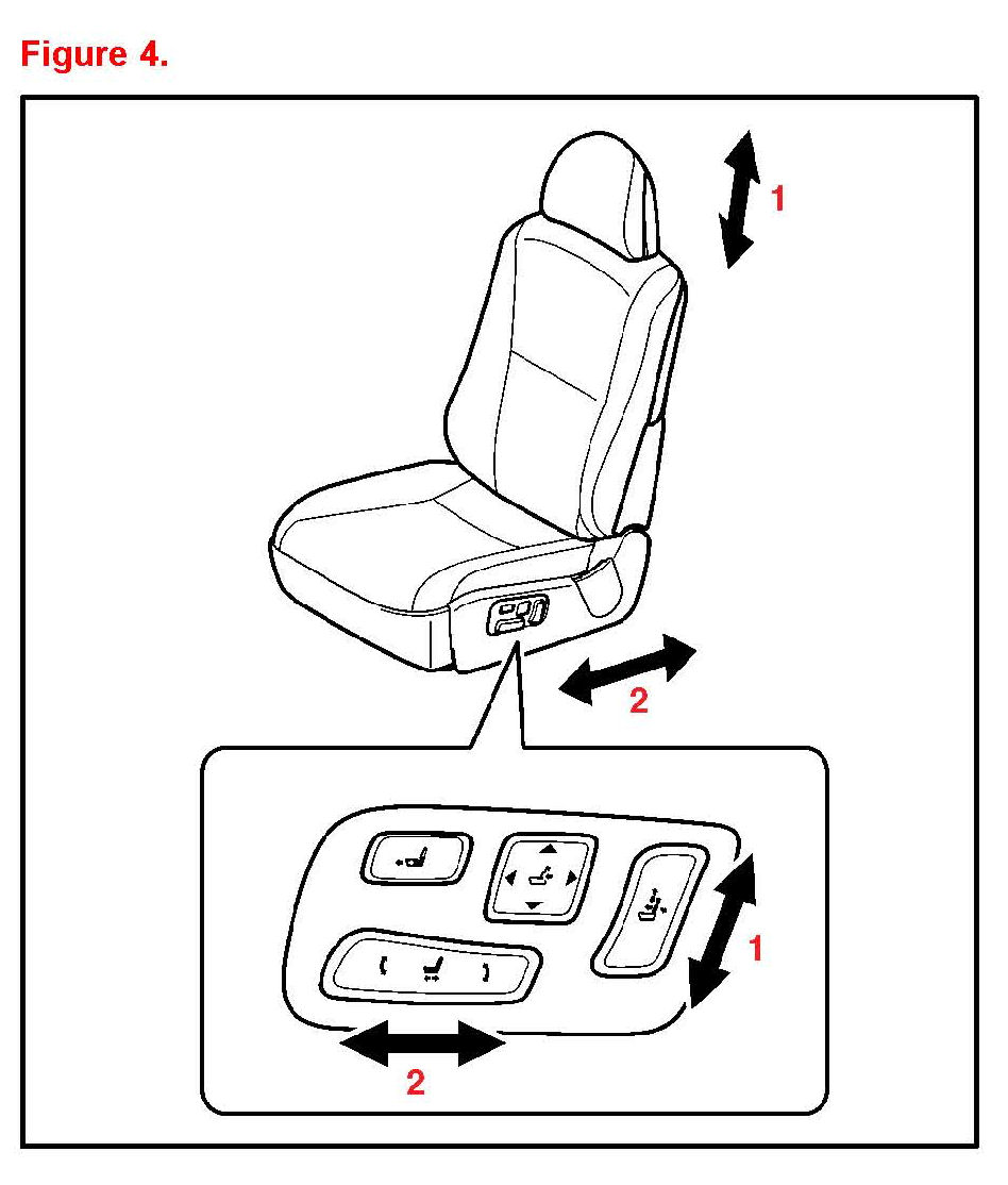 7. Operate the seat position control switch and check that the seat slides forward and rearward and that the beep is NOT heard. (Refer to "2" in figure 4.)