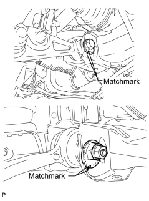 (b) When installing the front suspension member, align the matchmarks on the front suspension member and vehicle body, and then install the front suspension member.
