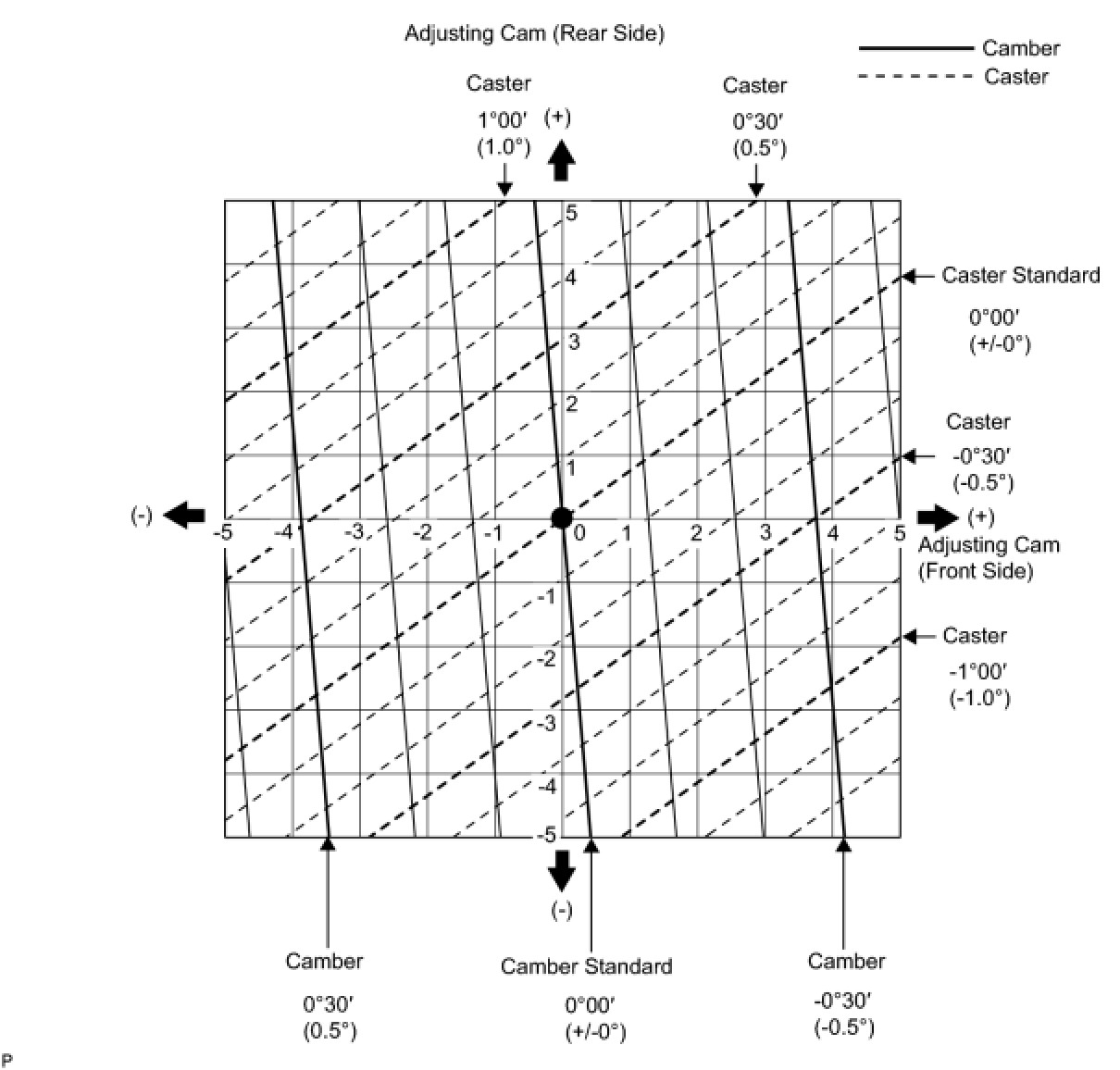 If the dimension of the front suspension lower arm changes 2 mm (0.0787 in.), the camber will change approximately 16' (0.3°).