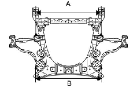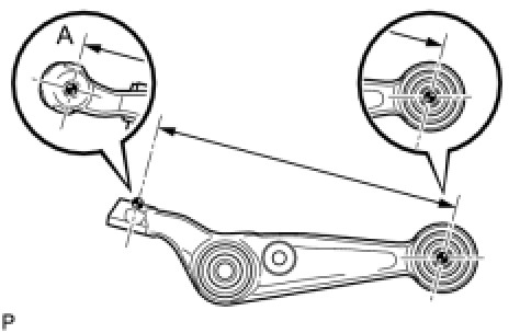 (2) Measure the dimension between the center of the front No. 1 suspension lower arm bush and position A.