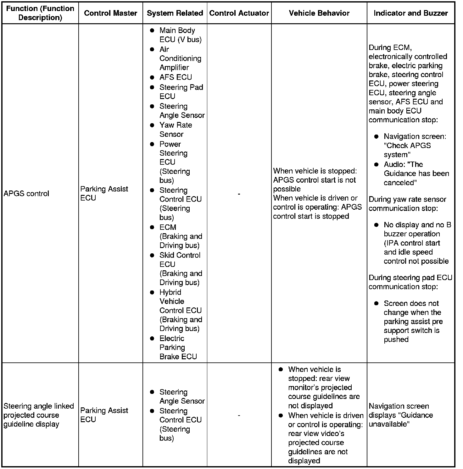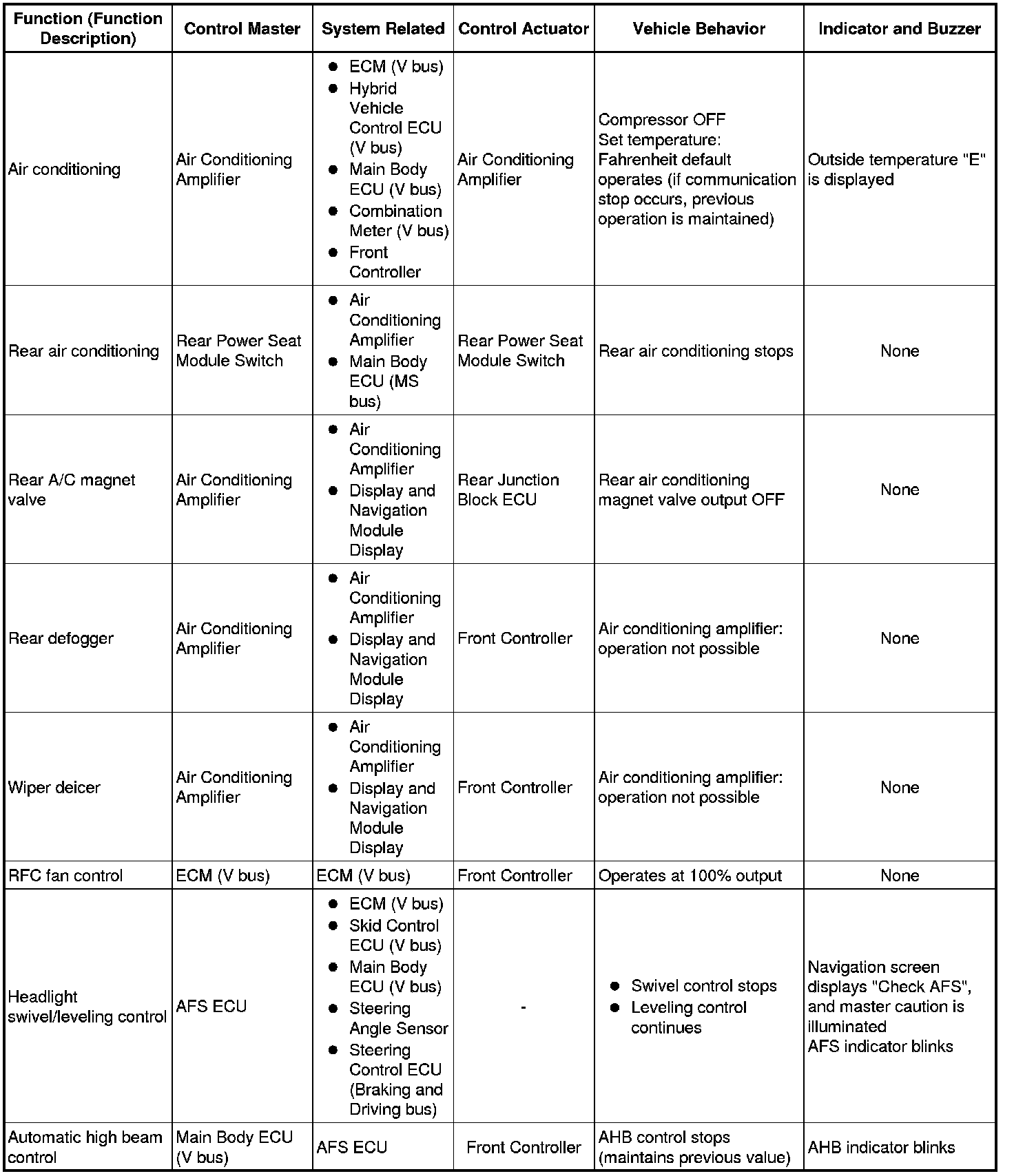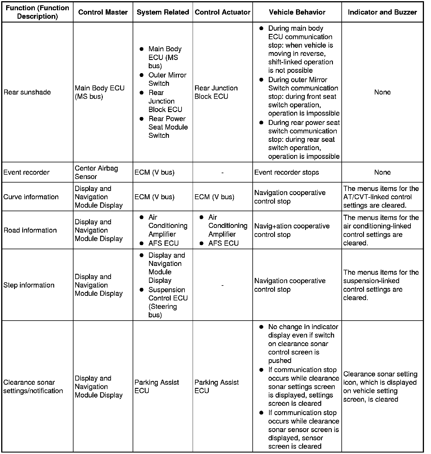 (b) The table below shows the effects on each system when communication is impossible. For further details, refer to each system.