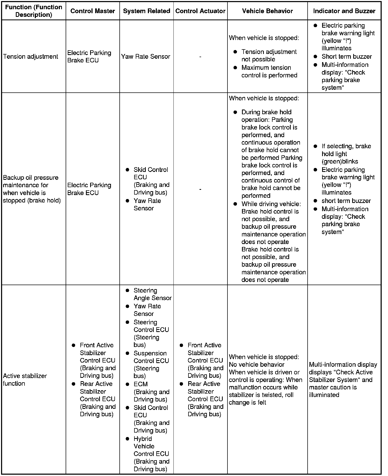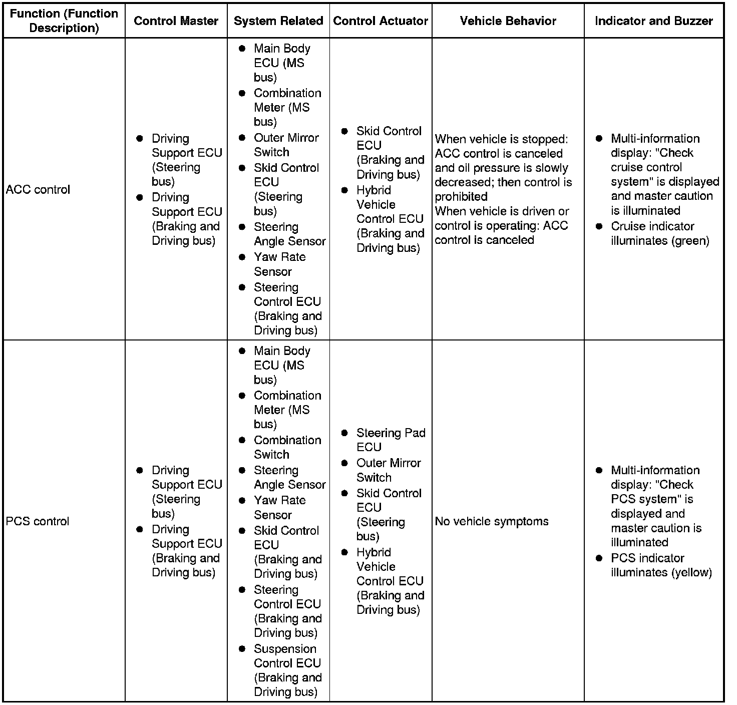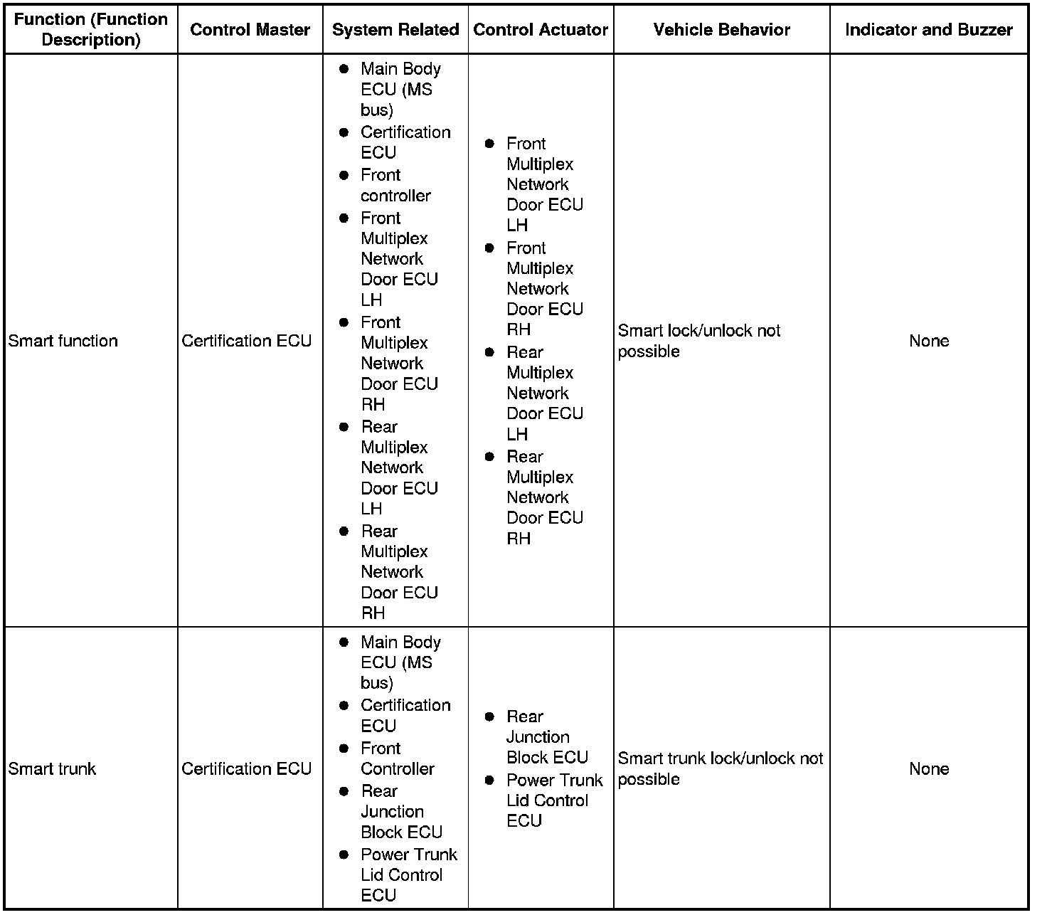 (b) The table below shows the effects on each system when communication is impossible. For further details, refer to each system.
