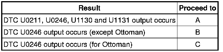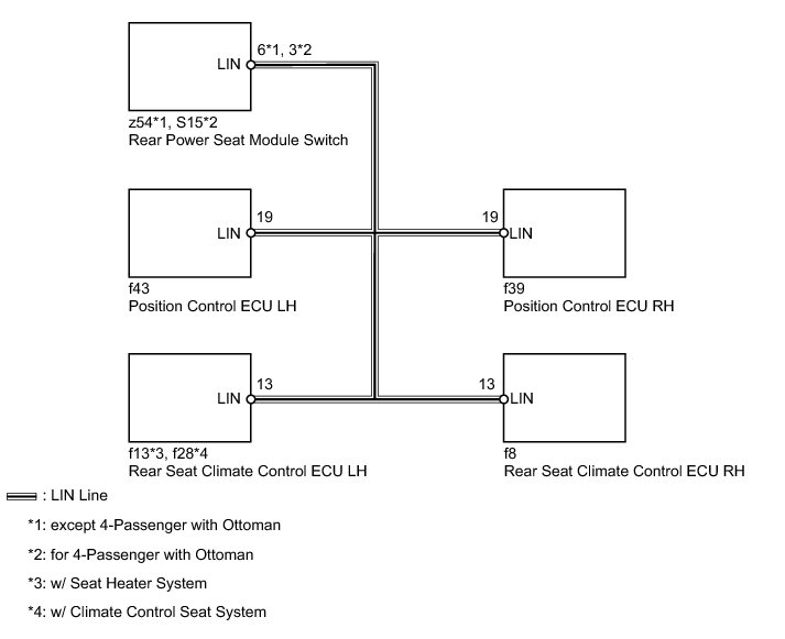 DTC U0211, U0246, U1130 and U1131 are output simultaneously when: 1) there is an open or short in the LIN communication bus between the switches on the rear seat, and 2) their LIN communication bus stops.