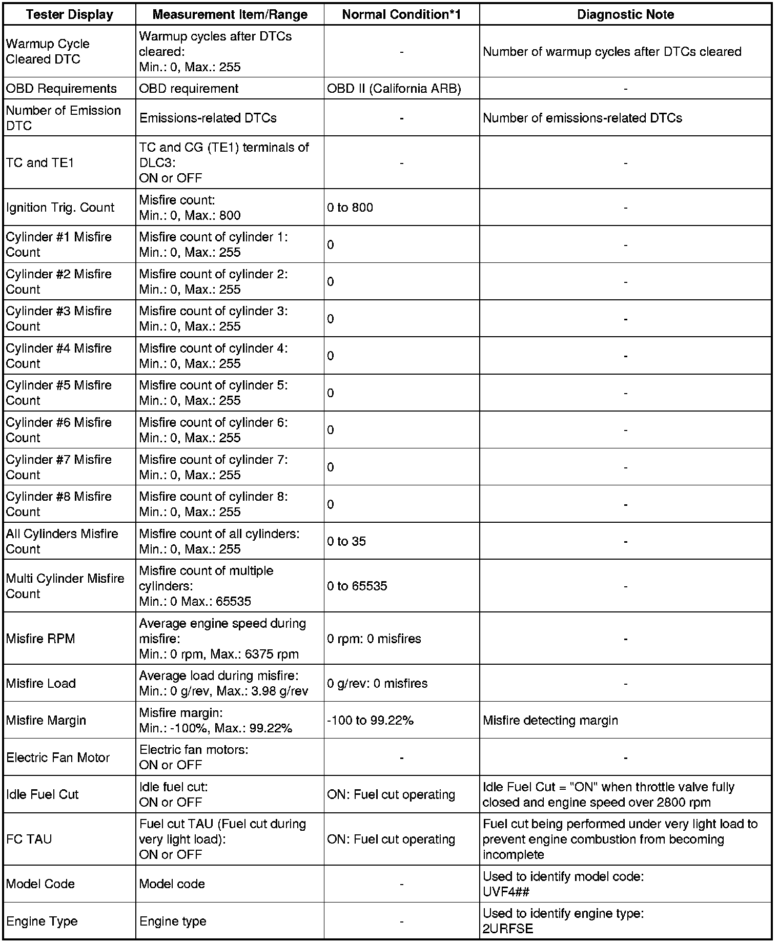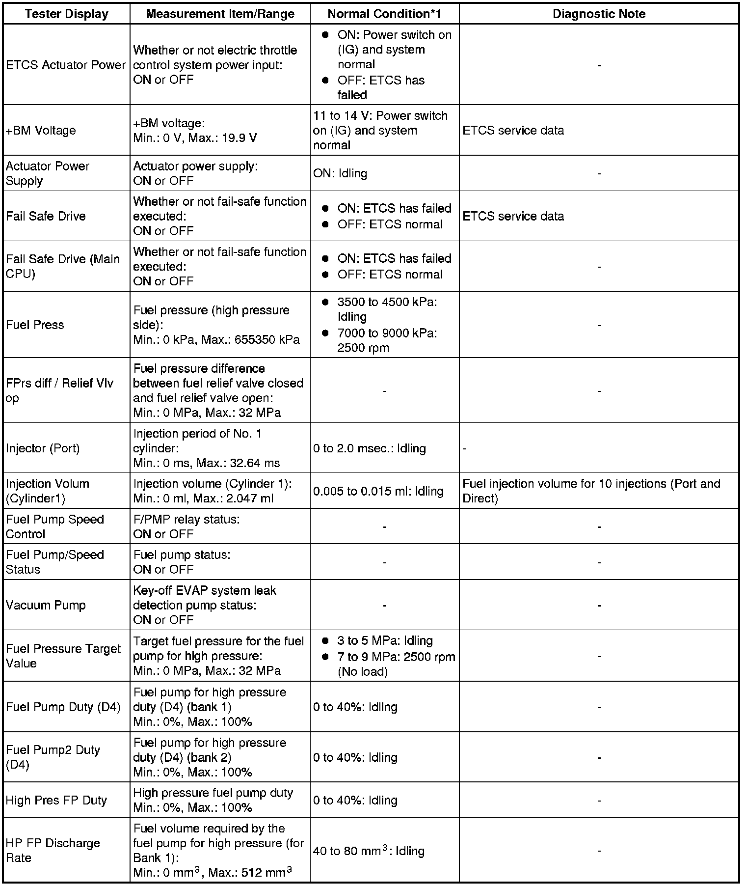 In the table below, the values listed under Normal Condition are reference values. Do not depend solely on these values when determining whether or not a part is faulty or not.