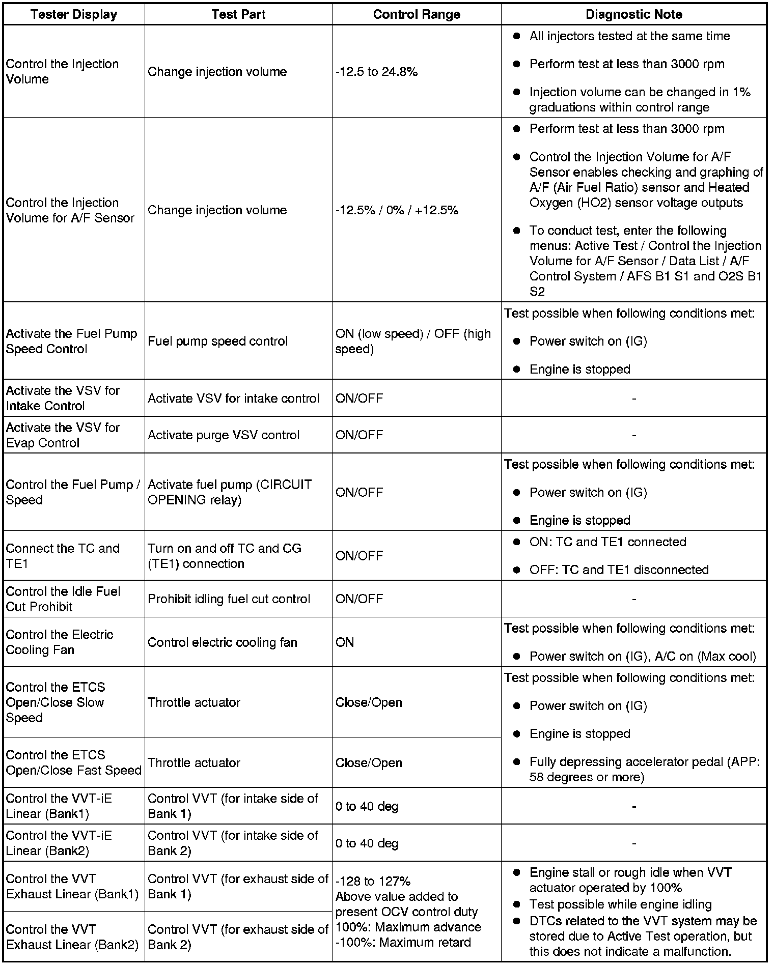 Using the Techstream to perform the Active Tests allows relays, VSVs and actuators and other items to be operated without removing any parts. This non-intrusive functional inspection can be very useful because intermittent operation may be discovered before parts or wiring is disturbed. Performing Active test early in troubleshooting is one way to save diagnostic time. Data List information can be displayed while performing Active Tests.