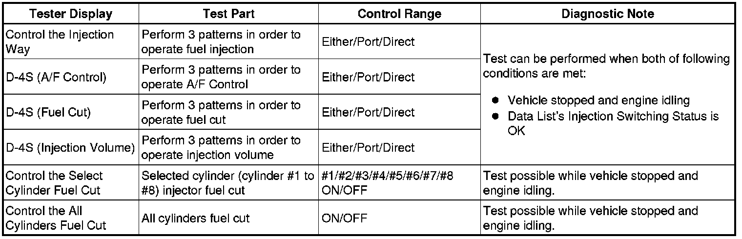 2UR-FSE ENGINE CONTROL SYSTEM: SFI SYSTEM: DATA LIST / ACTIVE TEST