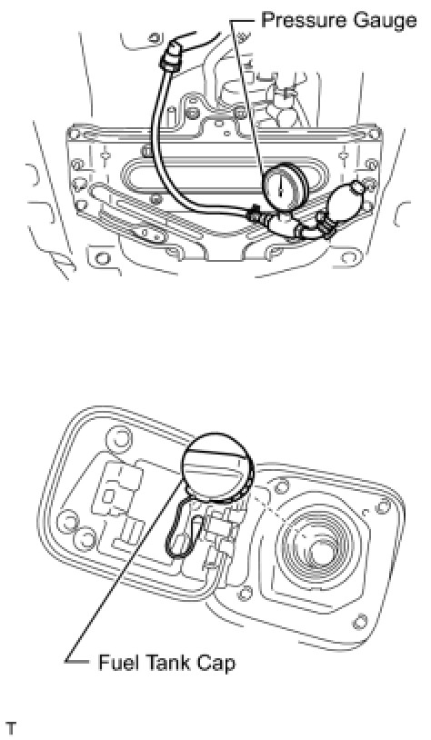 (e) Connect a pressure gauge to the fuel tank vent hose.