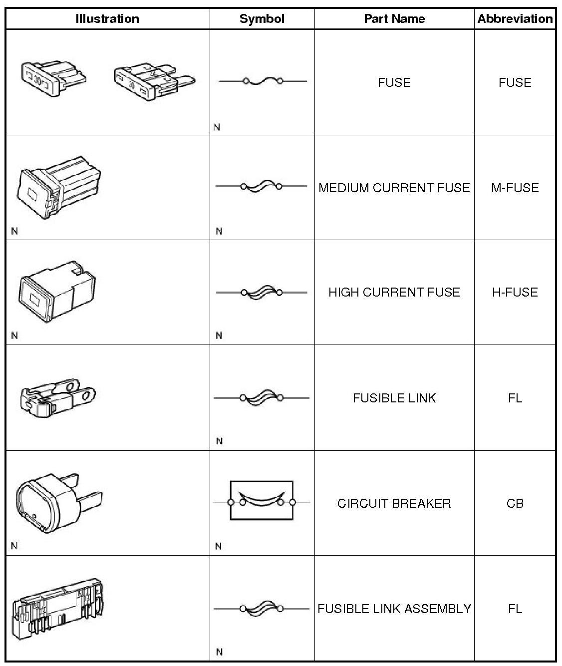 (2) If the wire of a fuse is broken, confirm that there are no shorts in its circuit.