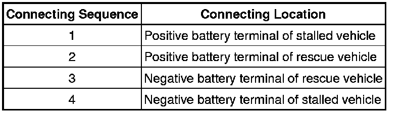 (6) Disconnect the booster cable in the reverse order of the connection procedure.