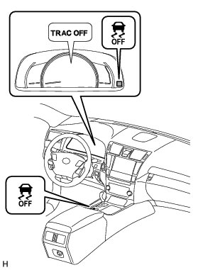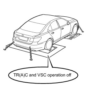 * When switching to TR(A)C OFF mode, the VSC OFF switch must be held for 3 seconds or more with the vehicle stopped. TR(A)C and VSC operation must both be turned off before beginning testing.