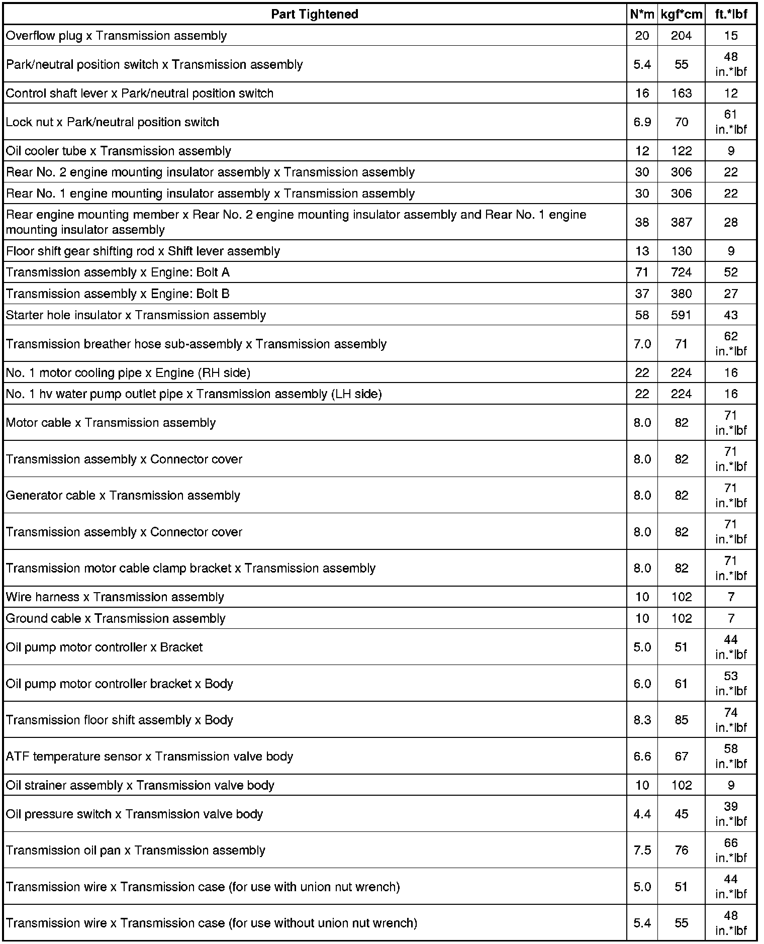 SERVICE SPECIFICATIONS: L110F HYBRID TRANSMISSION / TRANSAXLE: TORQUE SPECIFICATIONS