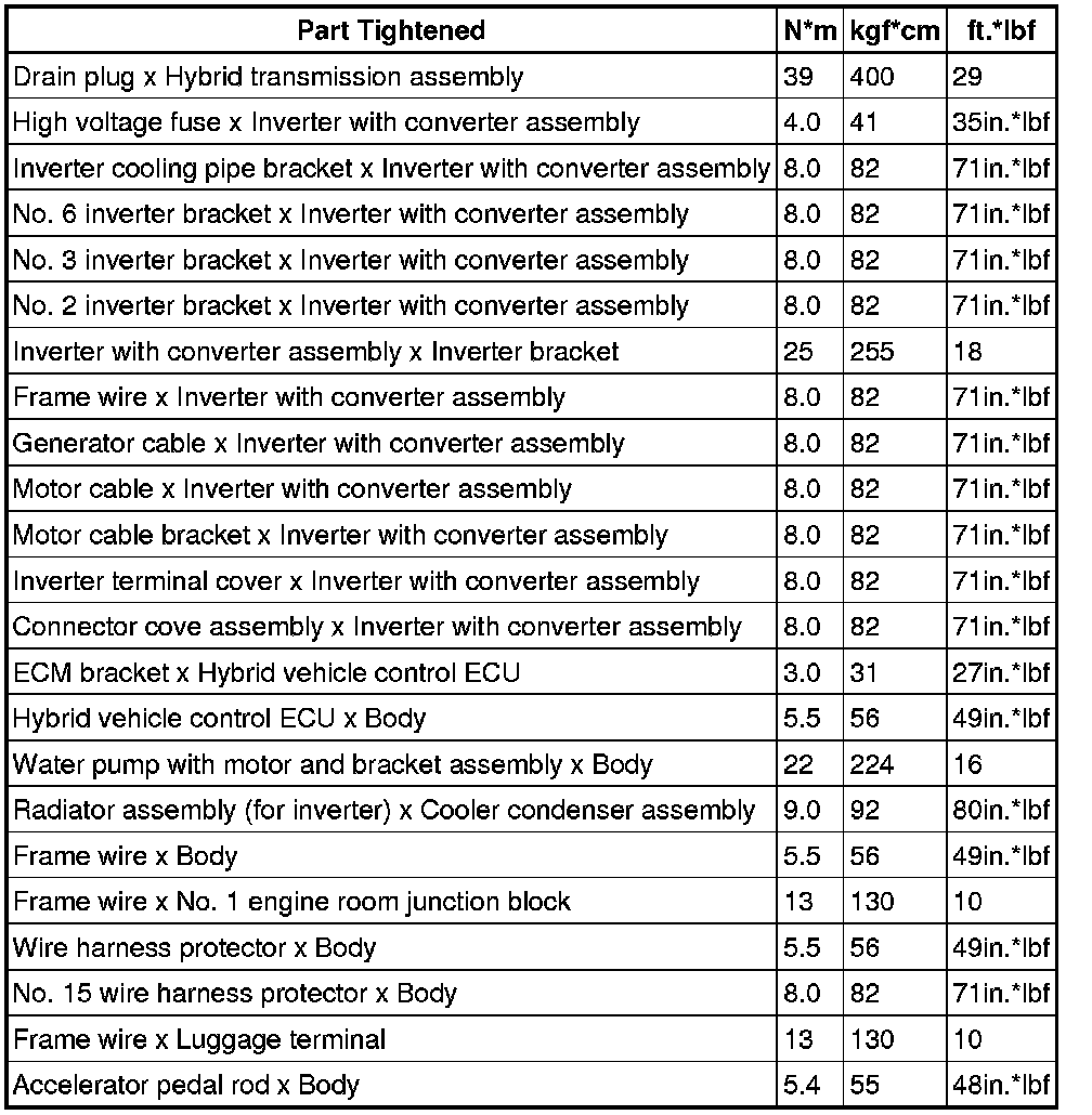 SERVICE SPECIFICATIONS: L110F HYBRID VEHICLE CONTROL: TORQUE SPECIFICATIONS