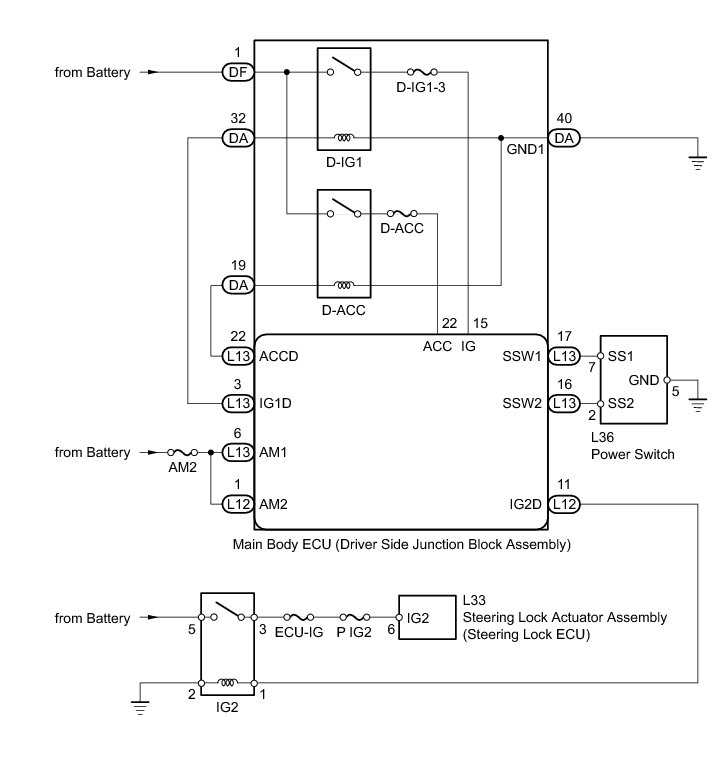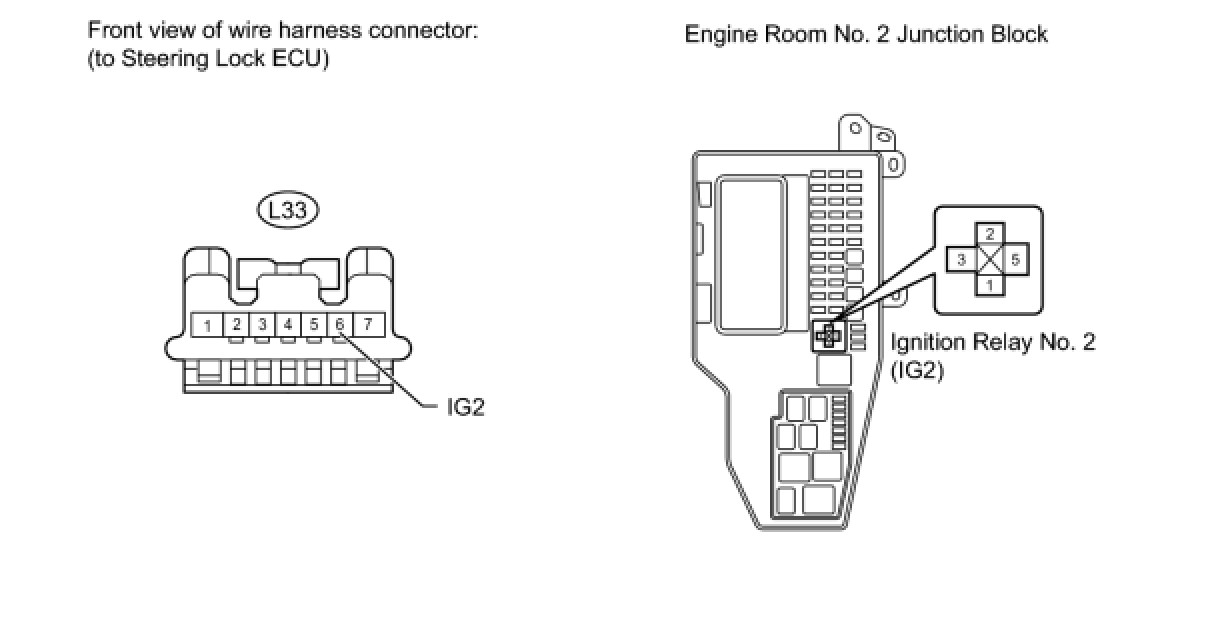 10. CHECK HARNESS AND CONNECTOR (STEERING LOCK ECU - IGNITION RELAY NO. 2 (IG2), BODY GROUND)