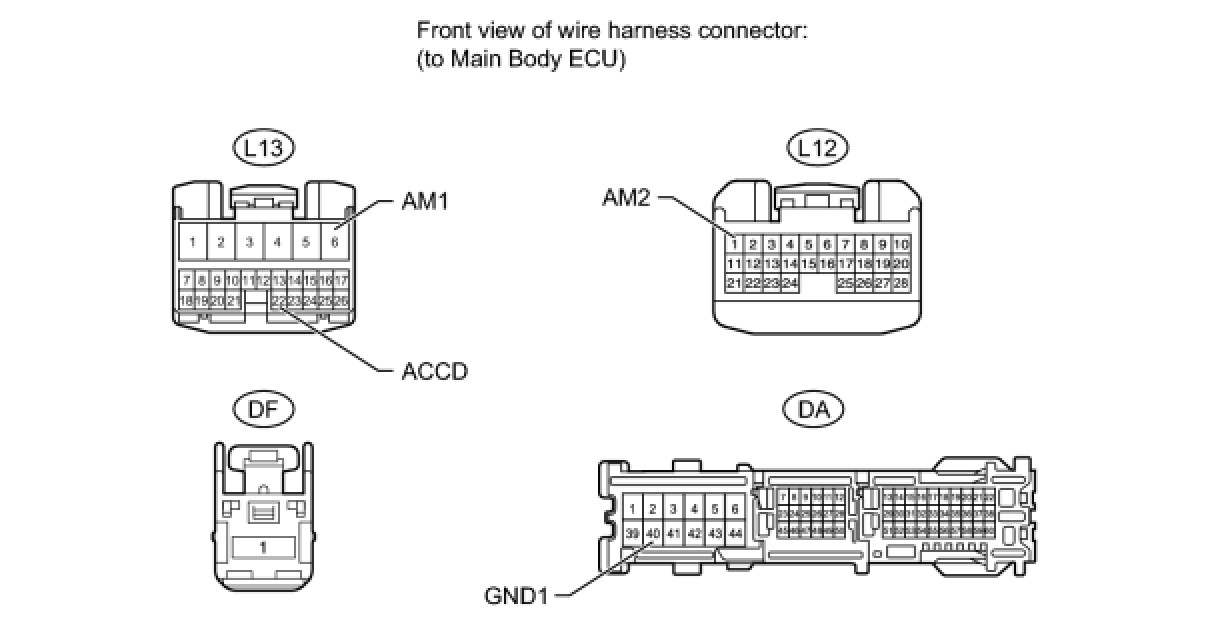 (a) Disconnect the L13, L12, DF and DA main body ECU connectors.