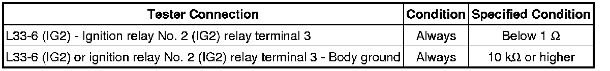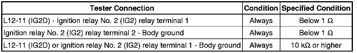7. INSPECT IGNITION RELAY NO. 2 (IG2)