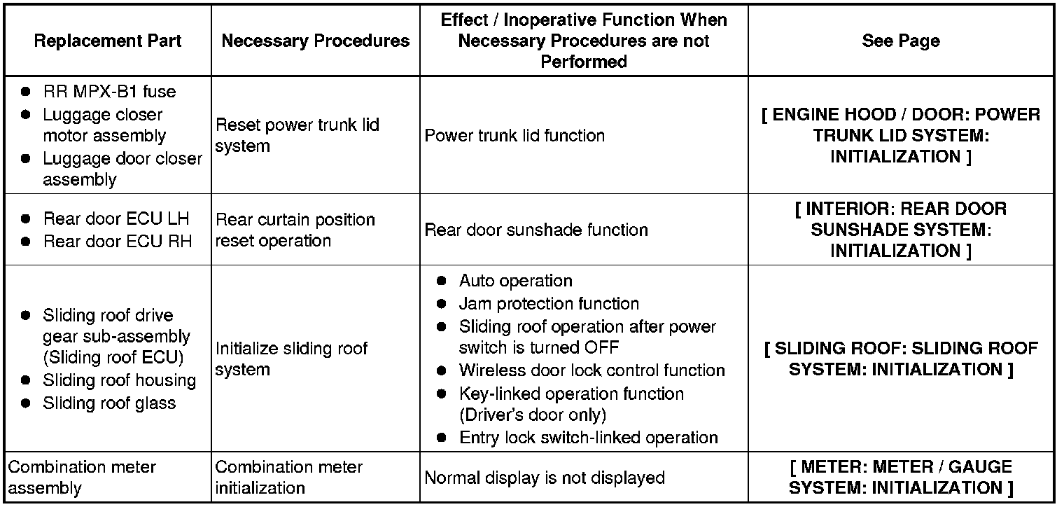 After the power switch is turned off, the display and navigation module display (HDD navigation system) records various types of memory and settings. As a result, after turning the power switch off, be sure to wait for the time specified in the following table before disconnecting the cable from the negative (-) battery terminal.