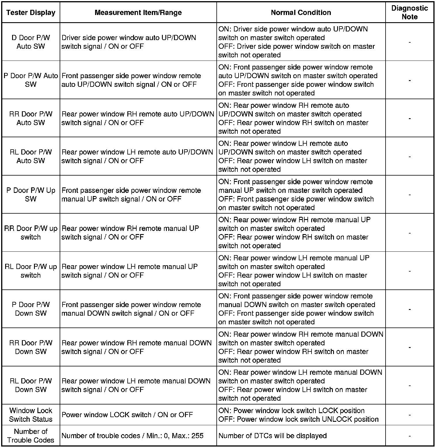 WINDSHIELD / WINDOWGLASS: POWER WINDOW CONTROL SYSTEM: DATA LIST / ACTIVE TEST