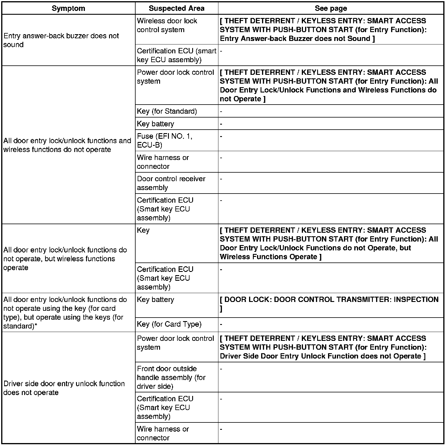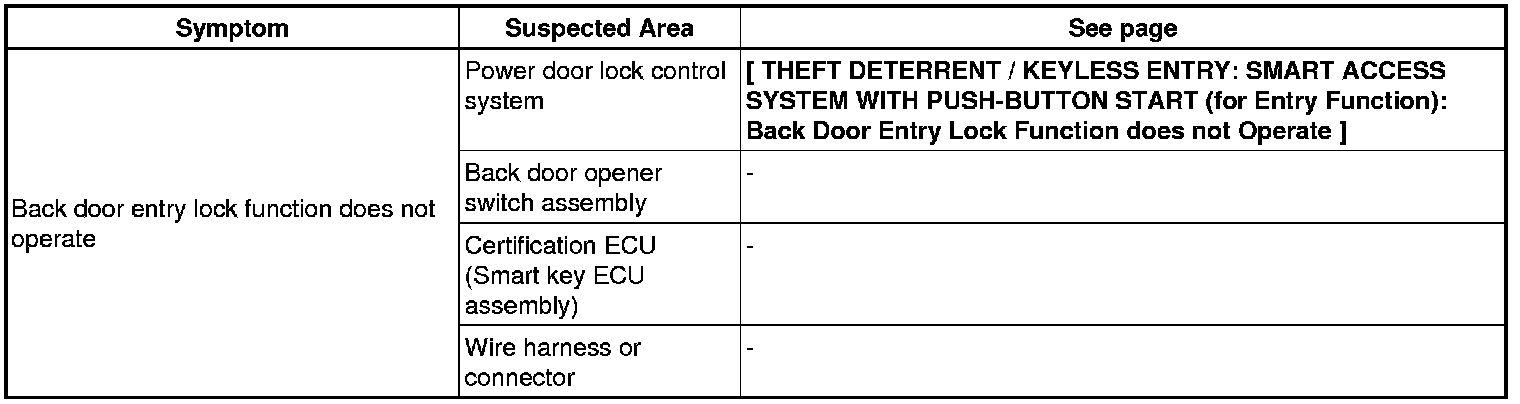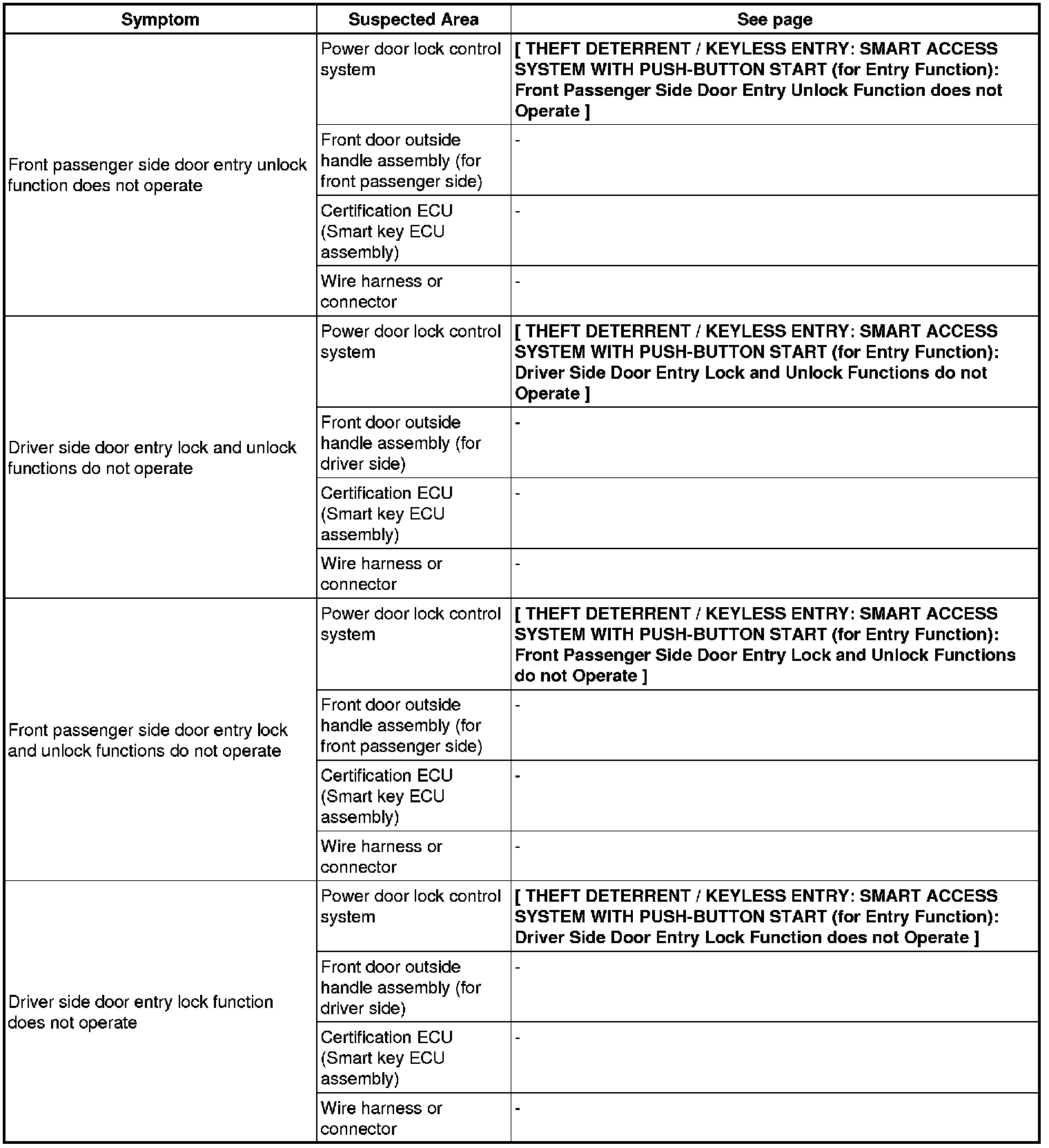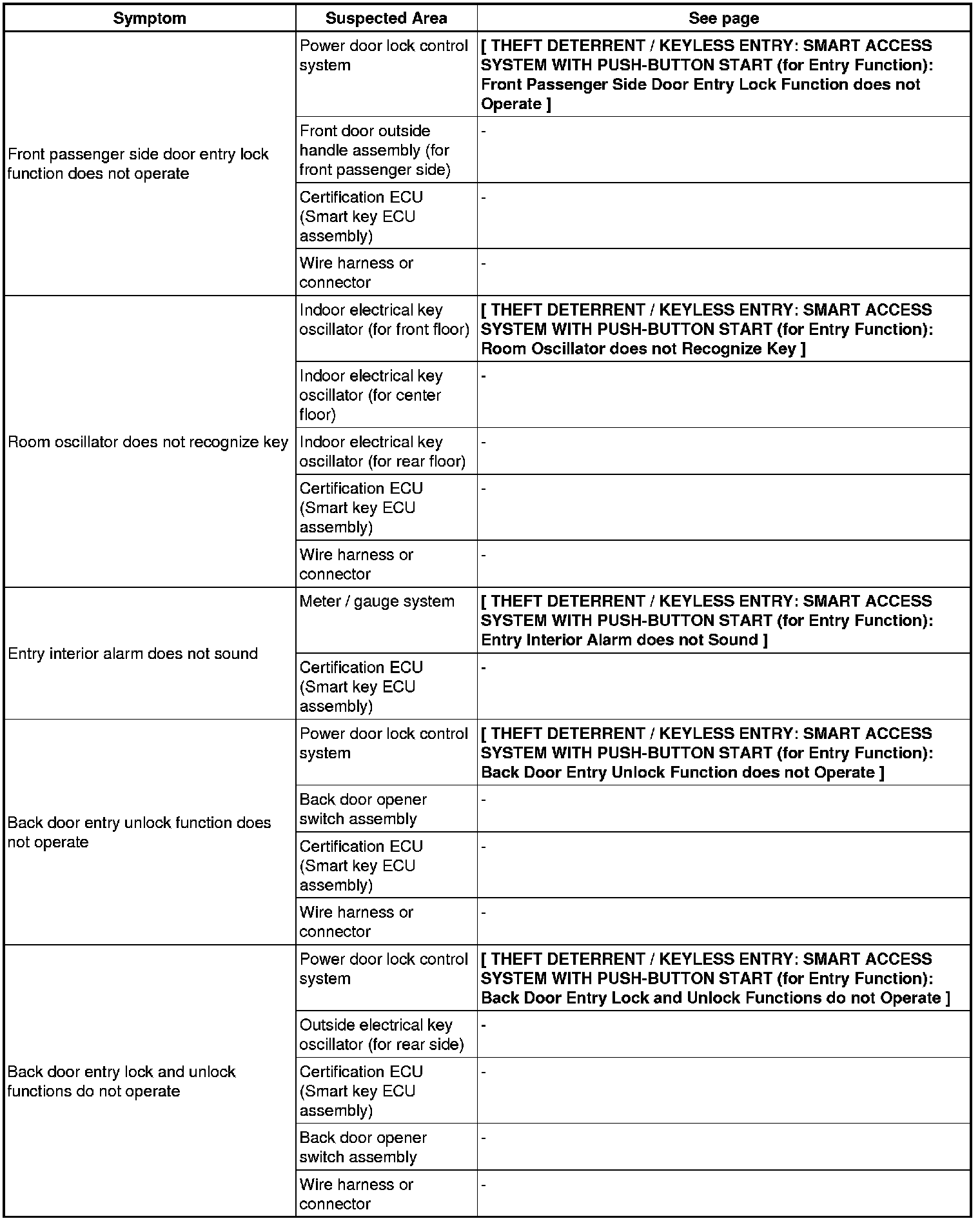 THEFT DETERRENT / KEYLESS ENTRY: SMART ACCESS SYSTEM WITH PUSH-BUTTON START (for Entry Function): PROBLEM SYMPTOMS TABLE