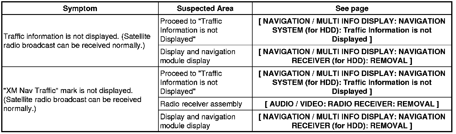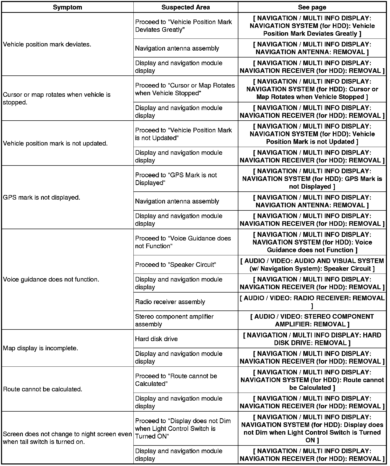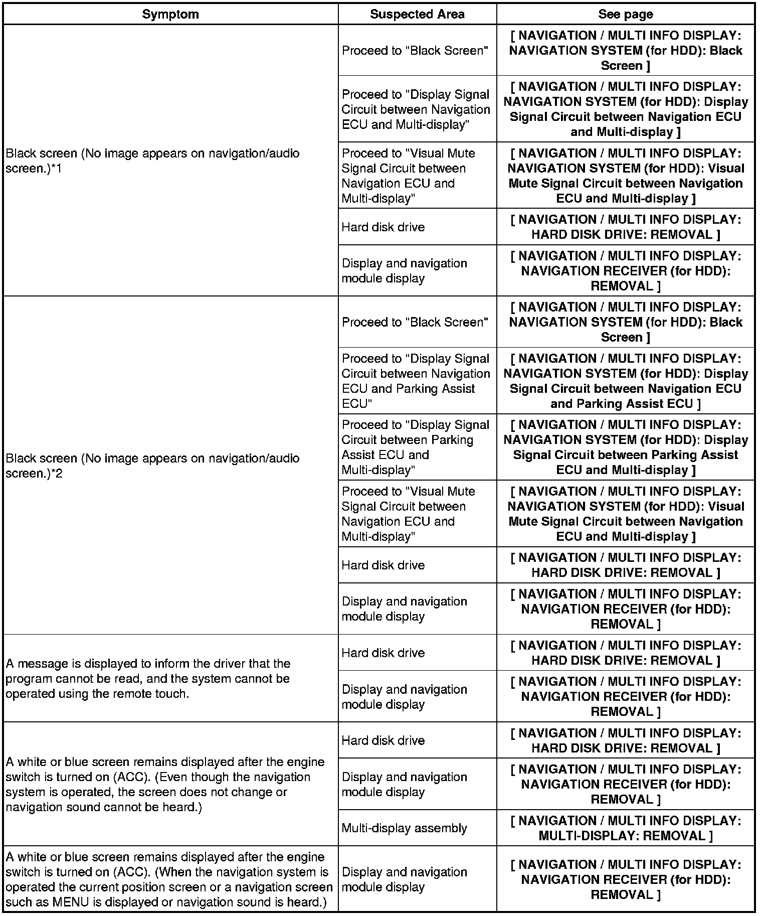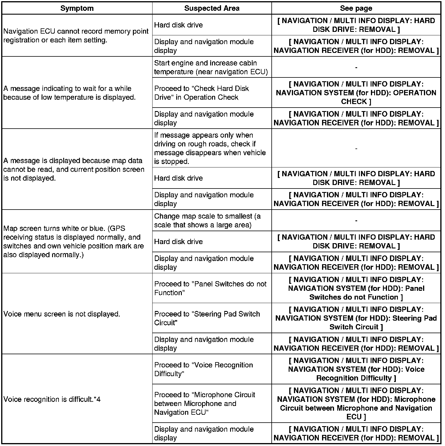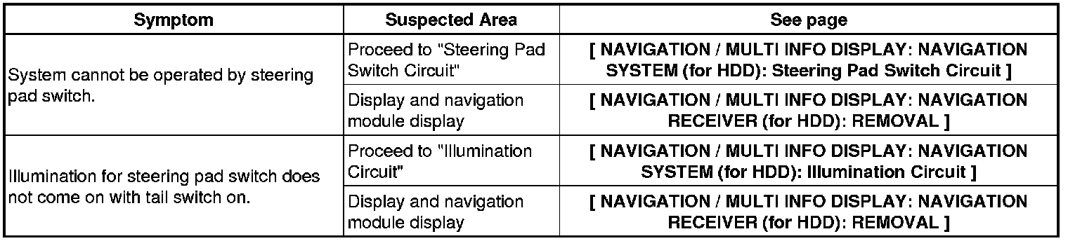 NAVIGATION / MULTI INFO DISPLAY: NAVIGATION SYSTEM (for HDD): PROBLEM SYMPTOMS TABLE