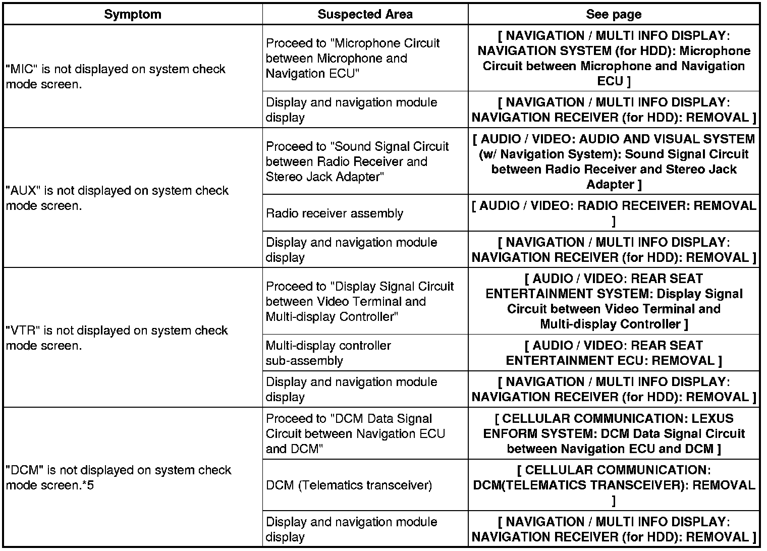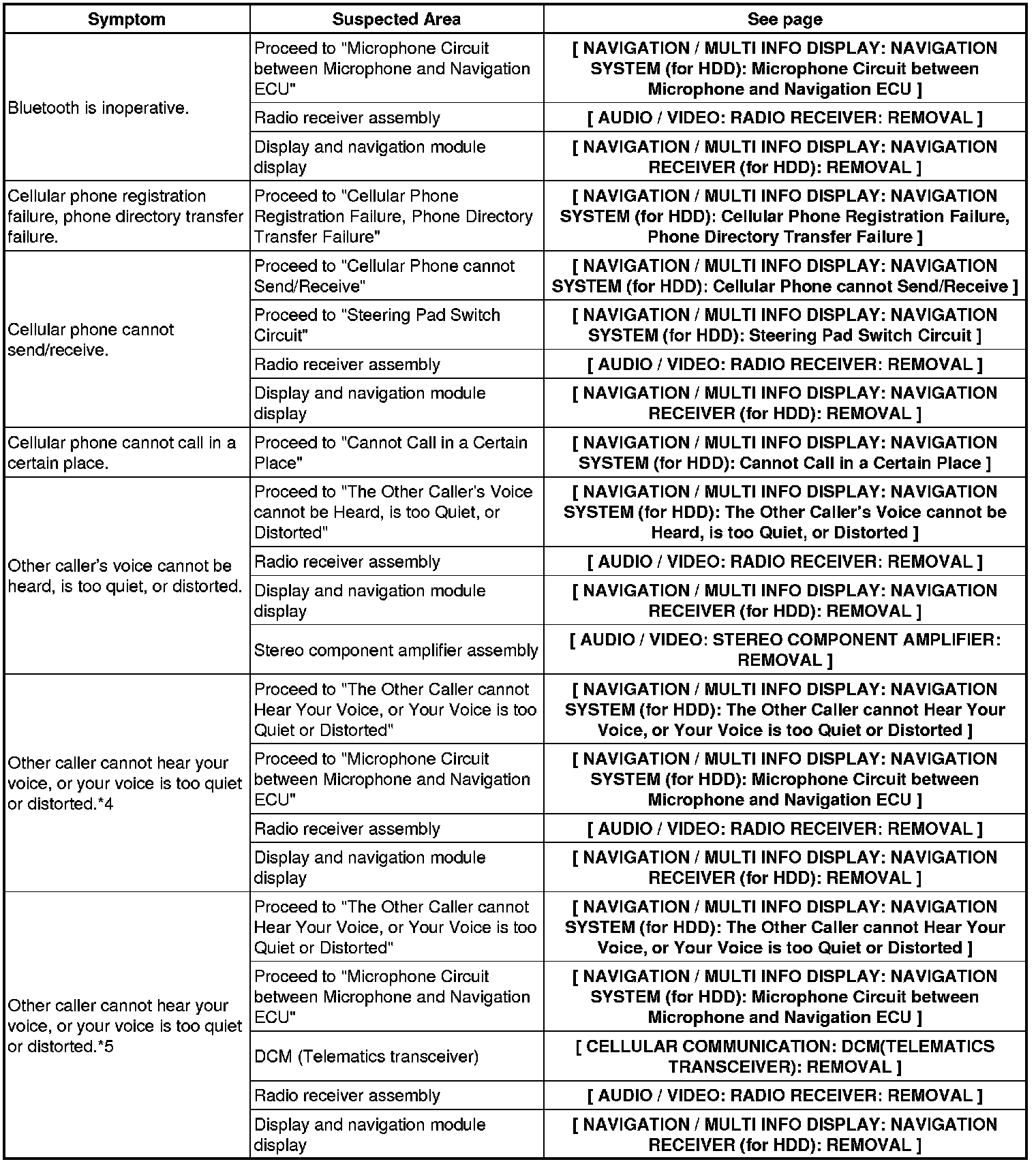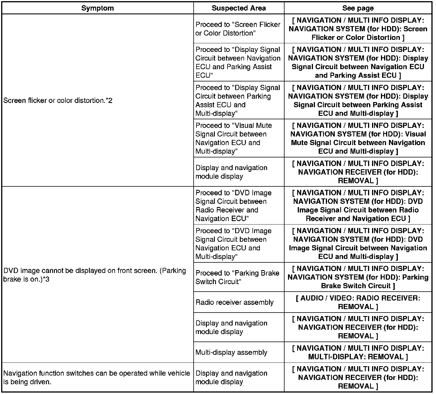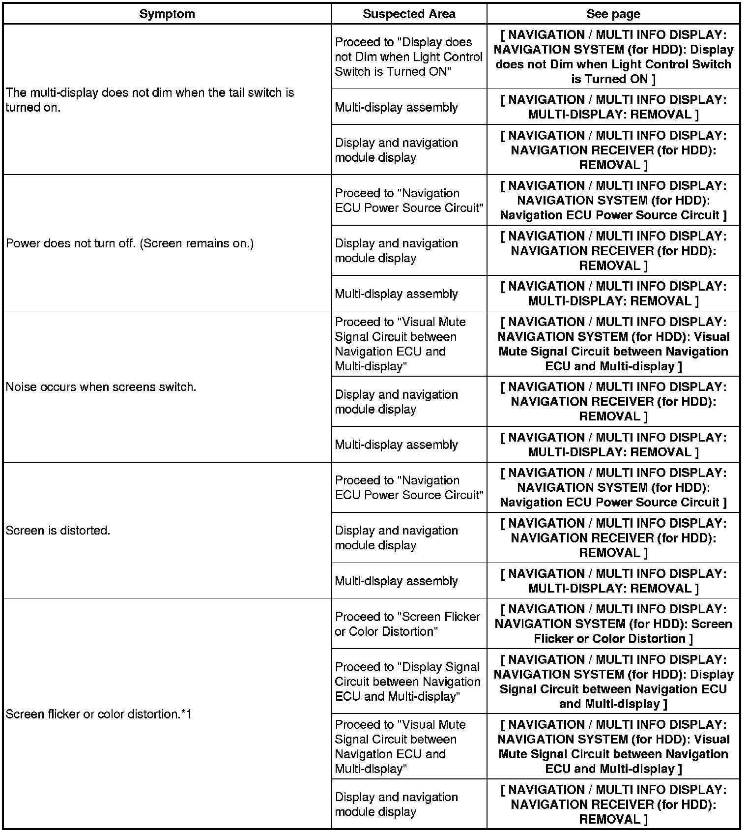 NAVIGATION / MULTI INFO DISPLAY: NAVIGATION SYSTEM (for HDD): PROBLEM SYMPTOMS TABLE