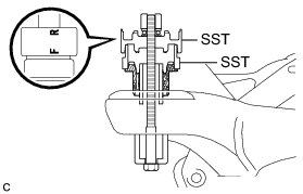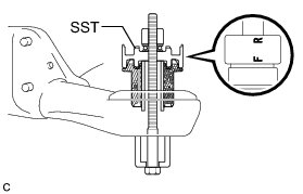 Use SST with the "F" mark facing the rear suspension member front body mounting cushion.