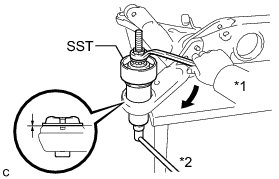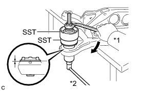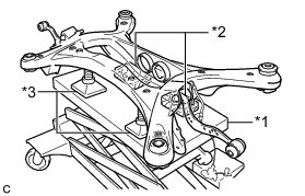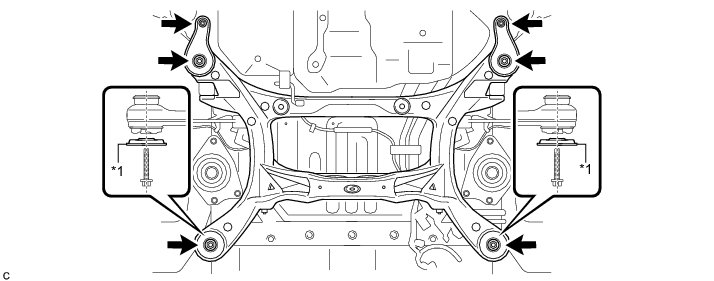 * Fully tighten the 2 bolts (C) after temporarily tightening the rear No. 2 suspension arm assembly.