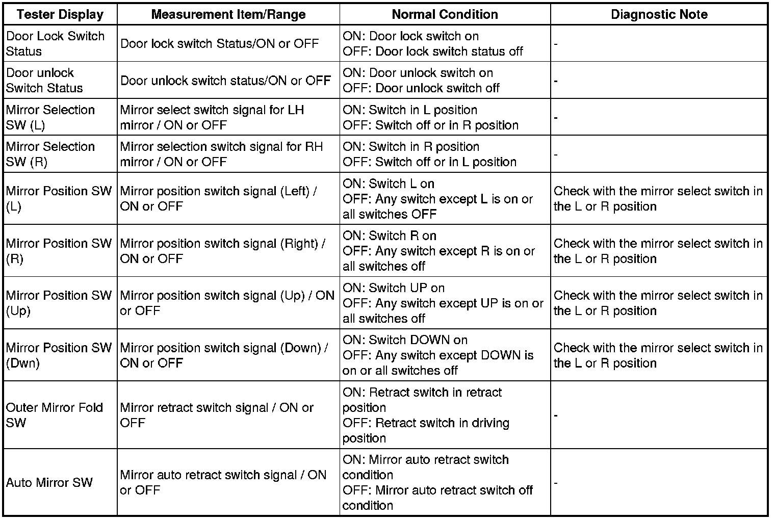 MIRROR (EXT): POWER MIRROR CONTROL SYSTEM: DATA LIST / ACTIVE TEST