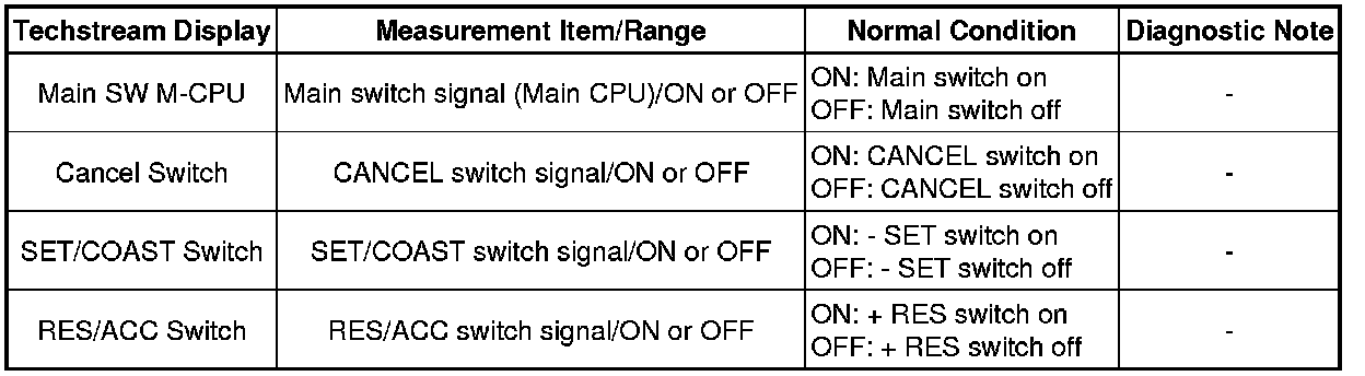 CRUISE CONTROL: CRUISE CONTROL SYSTEM: Cruise Control Switch Circuit