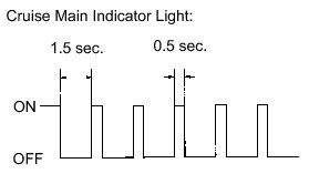 * If a malfunction occurs in the vehicle speed sensors, the stop light switch, or other related parts during cruise control driving, the ECU actuates AUTO CANCEL of the cruise control and blinks the cruise main indicator light. This indicator light informs the driver of the malfunction. At the same time, the malfunction is stored as a diagnostic trouble code.